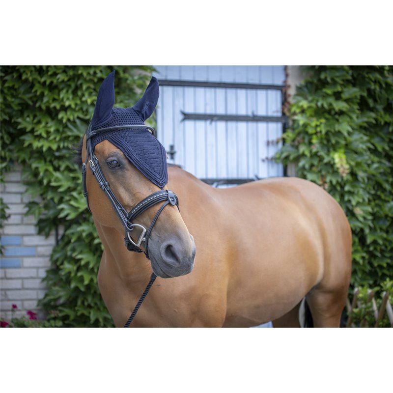 Dick gewebt für die perfekte Passform. Elastische Ohren, passend für alle Größen. Kleine Schlaufe fürs Reithalfter.