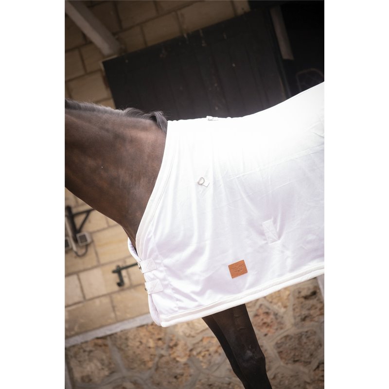 Das PADDOCK UV Mesh Combo Shirt wurde entwickelt, um das Pferd nicht nur vor Sonnenstrahlen, sondern auch vor Insekten zu schützen. Der weiße Stoff, aus dem es gefertigt ist, ist sehr strapazierfähig und das feine Netzgewebe bildet eine zuverlässige Barriere gegen die meisten Insekten. Da sie nicht gefüttert ist, ist sie sehr leicht und kann auch bei warmem Wetter getragen werden. Sie hat einen Verschluss an der Brust, zwei Bauchgurte und einen Schweifdurchlass. Sie kann allein oder mit einem abnehmbaren Halsschutz für vollständigen Schutz getragen werden. Ihr ergonomischer Schnitt liegt perfekt am Körper des Pferdes an und bleibt an Ort und Stelle. Auf der Rückseite ist eine kleine sportliche Aussparung zu sehen. Wie immer bei Paddock wird die technische Ausstattung des Hemdes mit einem sehr schicken Look durch den Einsatz einer hübschen und breiten Außenborte in Marine kombiniert. Material: 100 % Polyester und Schnallen aus 100 % rostfreiem Stahl. Größenempfehlung: Dieses Produkt fällt ganz normal aus, Sie können die übliche Größe Ihres Pferdes wählen. Pflegehinweis: Das UV Paddock Shirt kann perfekt in der Waschmaschine gewaschen werden. Achten Sie darauf, die Verschlüsse gut miteinander zu verhaken, damit die Trommel Ihrer Waschmaschine nicht beschädigt wird. Kein Trockner, Sie können es an der Luft trocknen