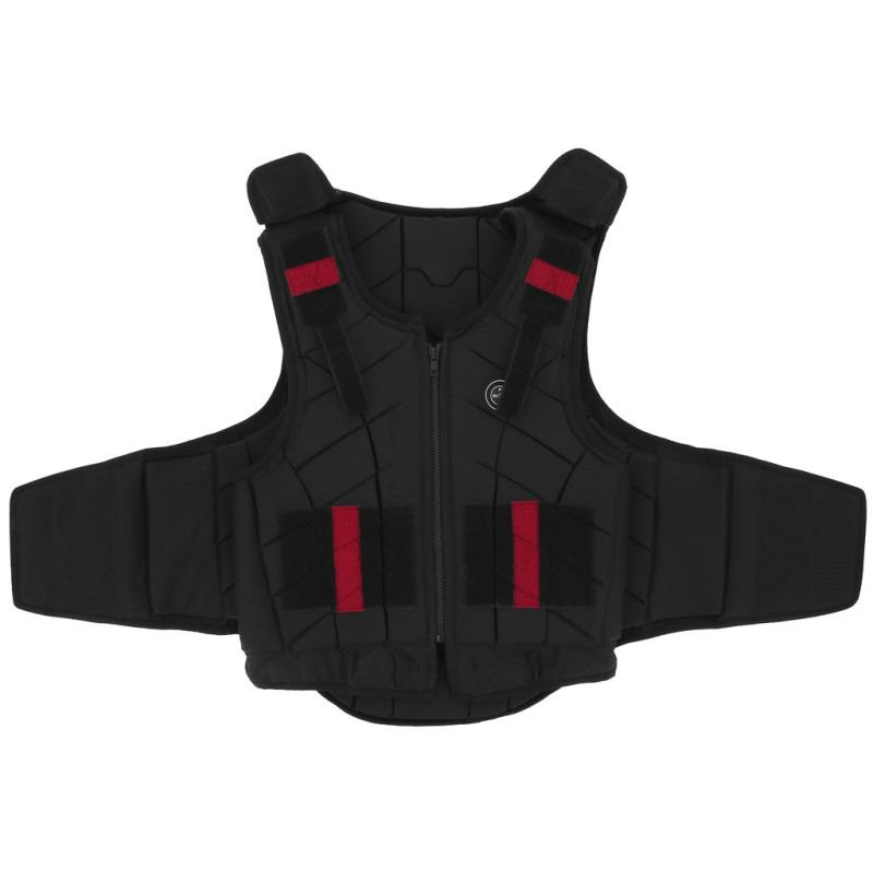 Schutzweste mit trapezförmigem Blockstruktur-System, bestehend aus stoßdämpfenden PVC-Nitrilschaumstoffplatten und einem Gewebe aus 95 % Polyester und 5 % Elastan. Einfach und leicht an die Körperform anzupassen durch große, selbstklebende Panels und kann auch an den Schultern durch selbstklebende Seitenverschlüsse angepasst werden. GRÖSSE - KINDER - XS bis XL ERWACHSENE - S bis XL FARBE SCHWARZ EN 13158:2018, Beta Level 3