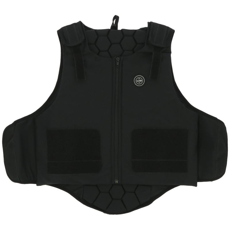 Kinnschutz mit einem strukturierten System aus sechseckigen Blöcken, stoßdämpfenden PVC-Nitrilschaumplatten, einem Gewebe aus 95 % Polyester und 5 % Elastan. Sehr leichter, moderner und flexibler High-Tech-Rückenprotektor mit kleineren sechseckigen Blöcken, die maximale Beweglichkeit ermöglichen und sich der Körperform anpassen.