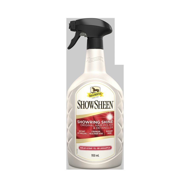 ShowSheen - multifunktionale Fell- und Mähnenpflege. Spart Putzzeit, wirkt staub- und schmutzabweisend und pflegt Fell und Mähne durch die enthaltenen Pro-Vitamine. Gebrauchsanweisung: Einfach auf Fell, Mähne und Schweif sprühen.