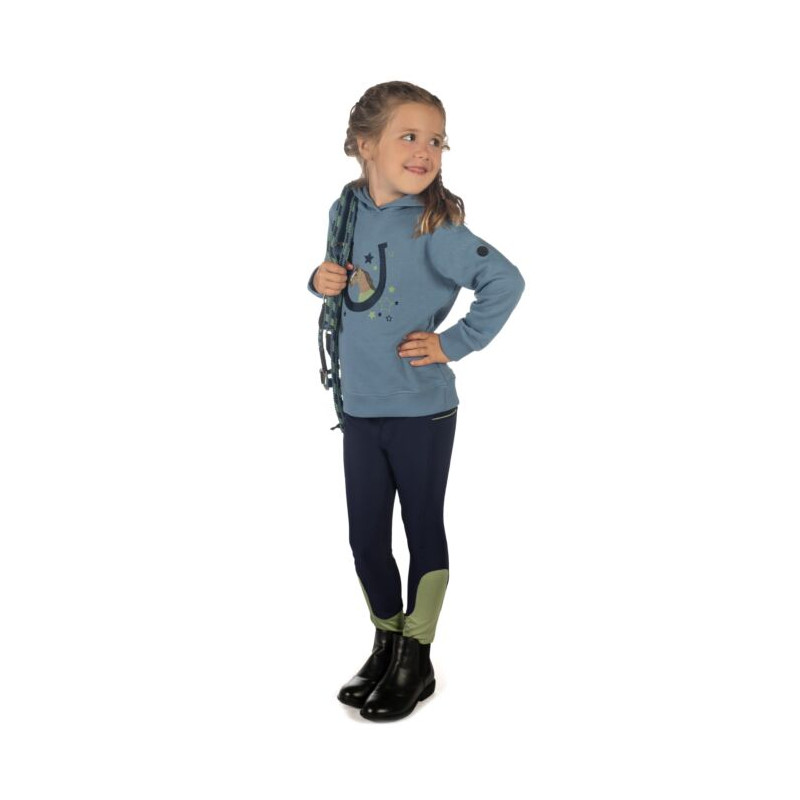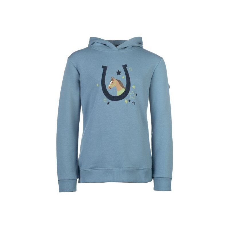 Der Hoody Diana ist der perfekte Begleiter für kleine Pferdefans! Gefertigt aus hautfreundlichem, atmungsaktiven Material, sorgt er für ein angenehmes Tragegefühl bei jeder Gelegenheit. Die gemütliche Kapuze und die elastischen Ärmel- sowie Saumbündchen bieten zusätzlichen Komfort und eine optimale Passform. Ein besonderes Highlight ist der liebevolle Print samt Stickerei auf der Vorderseite: Ein niedlicher Pferdekopf in einem Hufeisen, umgeben von kleinen Sternen, macht den Hoody zu einem echten Hingucker.