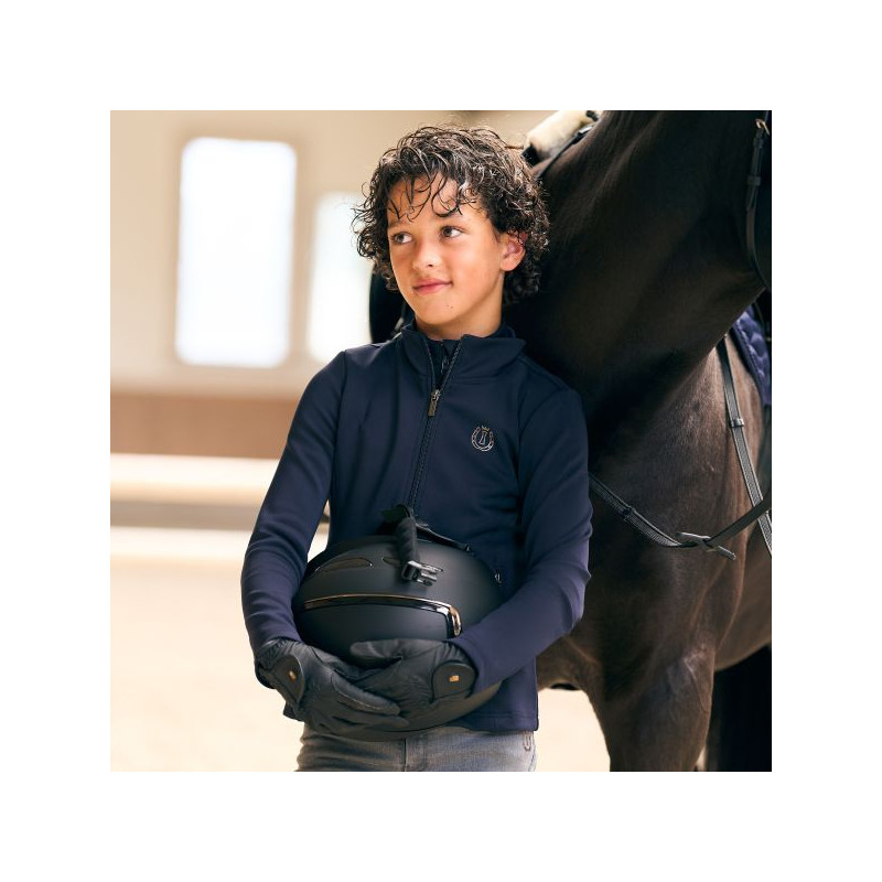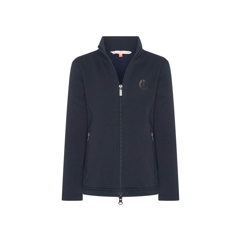 Cardigan mit Reißverschluss vorne in der Mitte * Taschen mit Reißverschluss im Vorderteil in den Längsnähten * Metall-Logo-Print auf der linken Brust * Stehkragen
