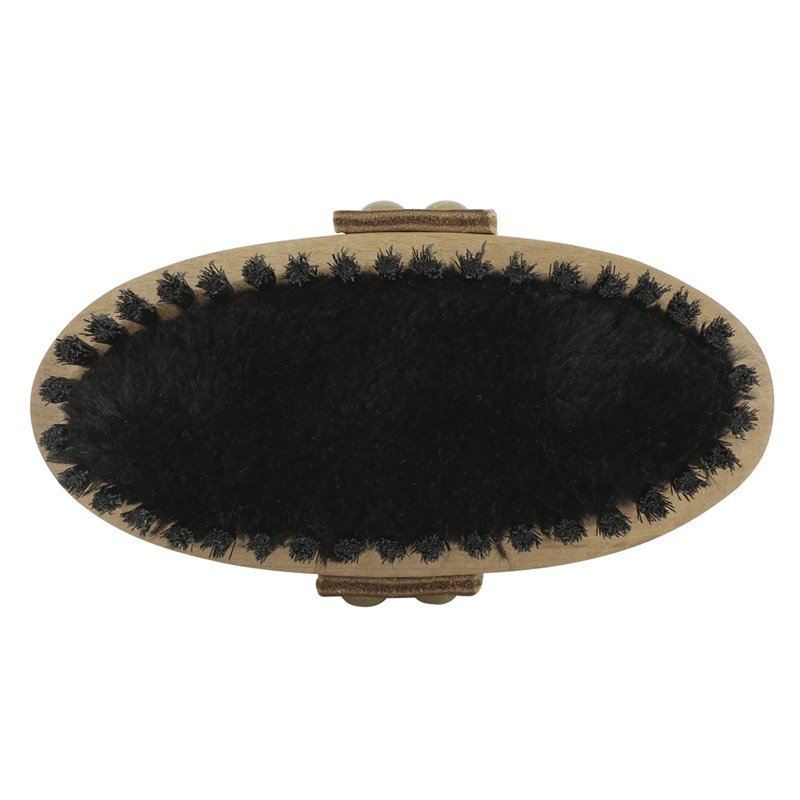 Brosse PENELOPE dotée de poils doux sur l'extérieur de l'ovale et d'une autre sorte, ultra douce à l'intérieur. Cette pièce de pansage permet de brosser des zones sensibles du cheval et lui apporter du confort.