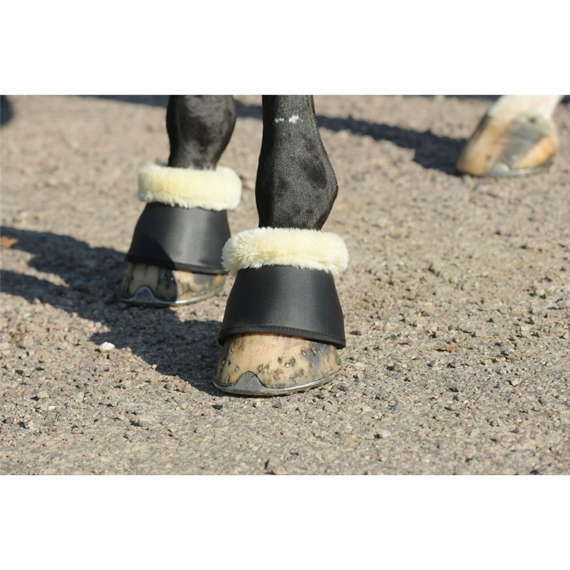 Cloche Pénélope en polyuréthane, doublé de néoprène. Bord montant recouvert de mouton synthétique. Fermeture par bande auto-agrippante.