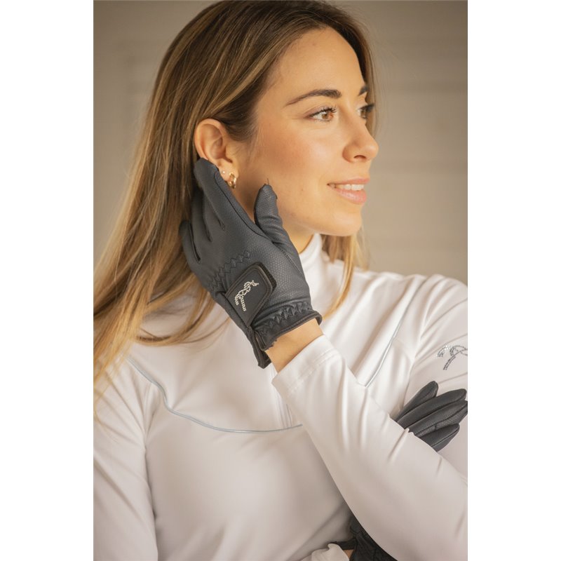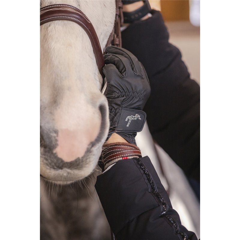 Gants PENELOPE "Lyoni" spécifiquement confectionné pour la pratique de l'équitation en hiver car doublé d'une belle fourrure à l'intérieur et orné du logo Pénélope en strass sur le scratch sur le dessus de la main.