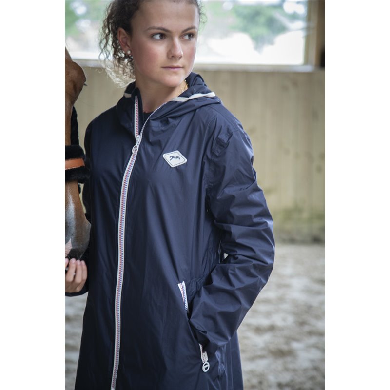 Blouson imperméable long, à manches longues. Le blouson Rainday est ultra léger à porter et se range facilement pour l'avoir toujours à portée de main. Une poche de chaque côté. Composition : Tissu principal : 100 % Polyester; Doublure : 100 % Polyester. Conseils d'entretien : Lavage machine 30°C très modéré, pas de sèche linge. Nettoyage à sec.