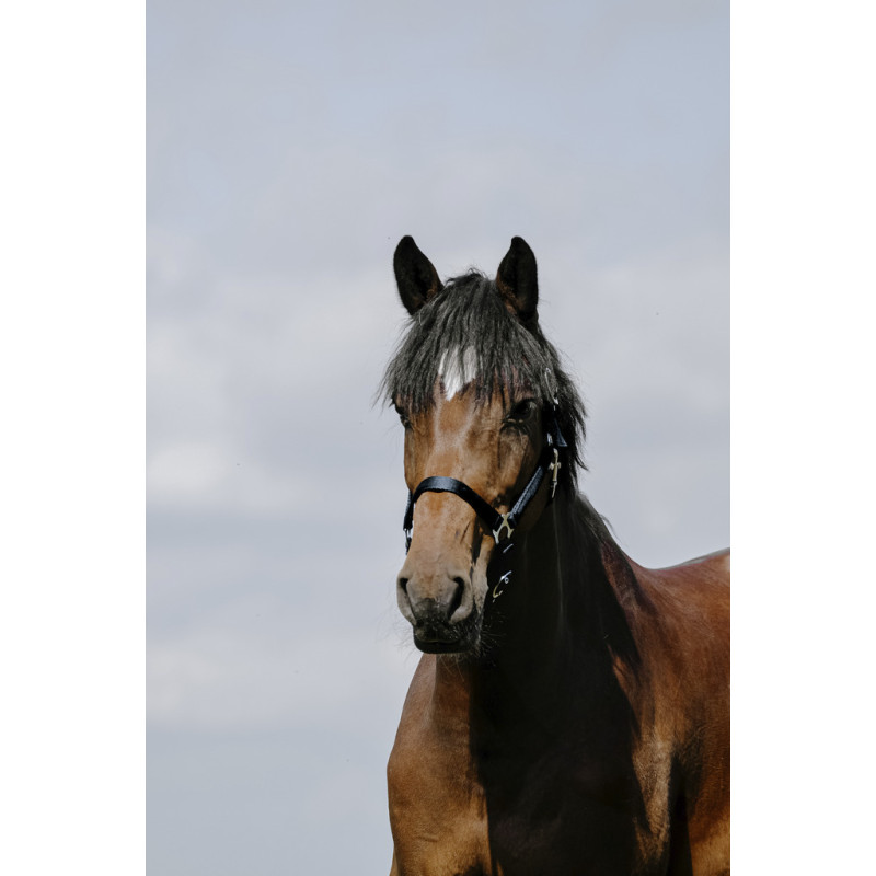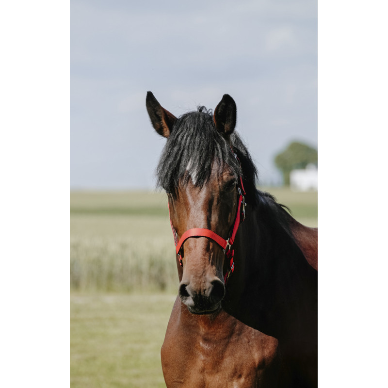 - Muserolle ajustable et mousqueton de sous-gorge.