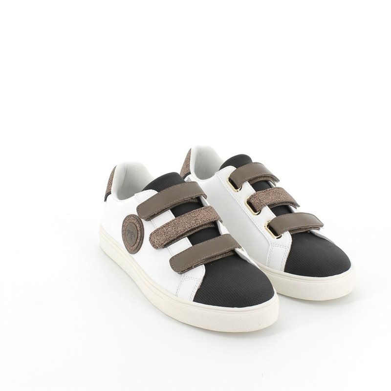 Une paire de sneackers composée de trois scratchs sur le dessus de la chaussure : deux scratchs en cuir taupe et un scratch central brillant. La reste de la sneackers Galaxie est blanc et noir, le logo Pénélope est embossé en petit sur un patch rond taupe et brillant cousu sur la partie extérieure de la chaussure. A l'arrière, au-dessus du talon, une partie brillante apporte encore une touche sporty-glam à la chaussure et sur laquelle on retrouve le monogramme PL. La semelle mesure 2.5cm. Cette basket 100% dans l'esprit Pénélope pourra être porté en ville mais aussi aux écuries, une fois les bottes rangées...