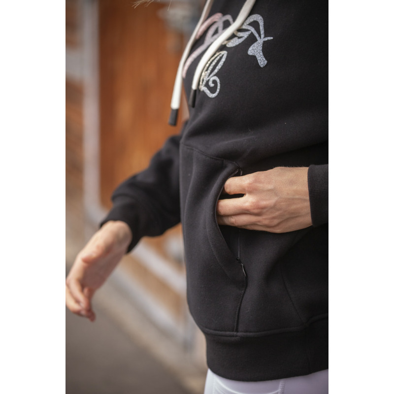 Le sweat Funny est parfait pour porter en ville comme aux écuries. Il mixe la sobriété de la coupe à l'originalité de son marquage. Sa poche centrale sur le devant se ferme par un zip de chaque côté.